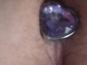 brunette gives tail to sissy crossdresser with anal woman cum on buttocks